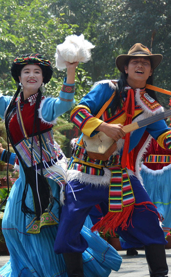云南省境內(nèi)的藏族人口約12萬,主要聚居在云南迪慶藏族自治州,少量散居于麗江、貢山、永勝、寧蒗等縣。藏族信奉藏傳佛教,白色被藏族視為純潔神圣的象征。藏族村占地21畝,村內(nèi)有大小中甸地區(qū)的坡頂民居和德欽地區(qū)的雕樓式平頂民居。莊嚴(yán)神圣的藏傳佛寺,壯觀的迎賓白塔,象征吉祥和睦的“白牦牛”雕塑與獨具風(fēng)格的藏式建筑互為映襯,相得益彰。藏族主要節(jié)日有:藏歷年、丹巴日古(七月夏游節(jié))、昂曲節(jié)、格冬節(jié)等;主要禮節(jié)是...