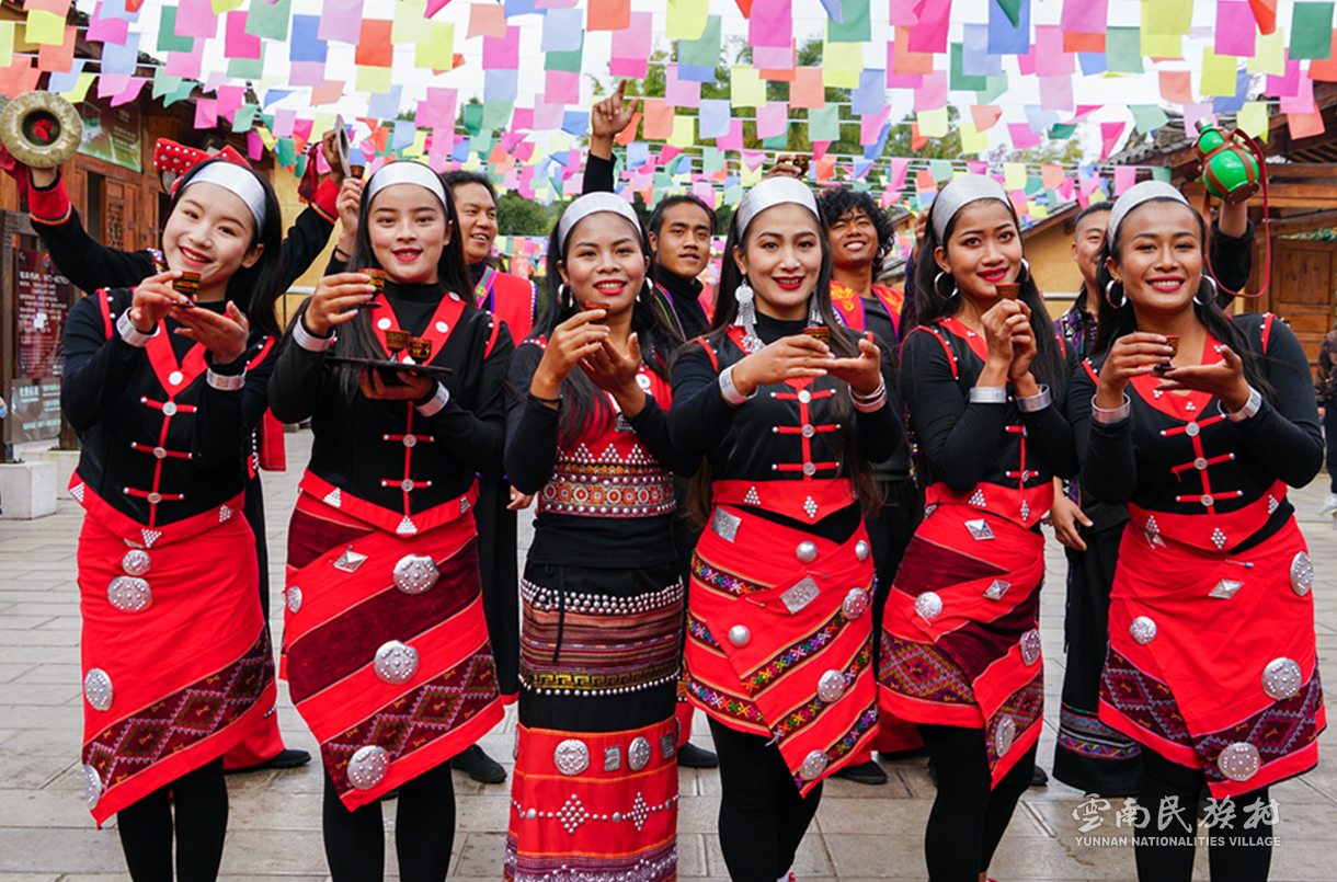 彝族在云南境內(nèi)約471萬人,是省內(nèi)人口最多、分布最廣的少數(shù)民族,主要聚居在金沙江、元江流域和哀牢山、無量山腹地。彝族是一個能歌善舞的民族,民間打歌、跳樂之風(fēng)盛行,大三弦、跌腳舞久負(fù)盛名。火把節(jié)是彝族最具特色的民族節(jié)日。彝族村占地50余畝,三虎浮雕墻與虎頭內(nèi)祖師形象表現(xiàn)了彝族虎鷹文化。太陽歷廣場圖騰柱上有太陽、虎、火和八卦圖形象,周圍環(huán)繞著10個朝向不同的月球造型,外圓周有12生肖石雕。依山而建的“...